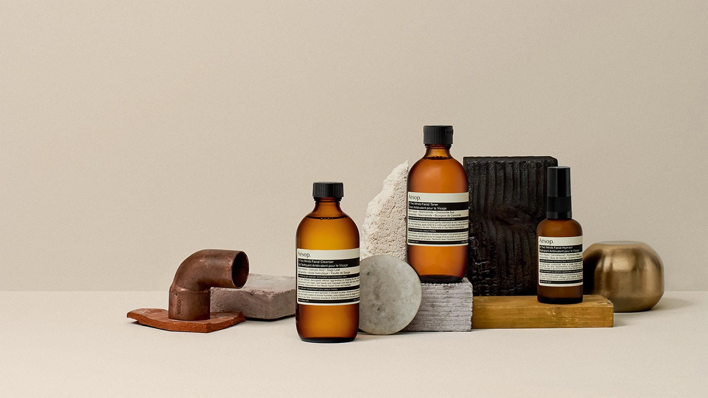 Aesop, la marque australienne de cosmétiques, a fait le choix inverse de toute l'industrie beauté. Pas de peaux parfaites, pas de modèles souriants, pas d'images qui font rêver à une vie meilleure. Des compositions sobres, des textures, des architectures, une lumière neutre. Ce traitement traduit un positionnement sur l'intelligence et la discrétion. Le produit est là. Il n'est pas mis en scène.